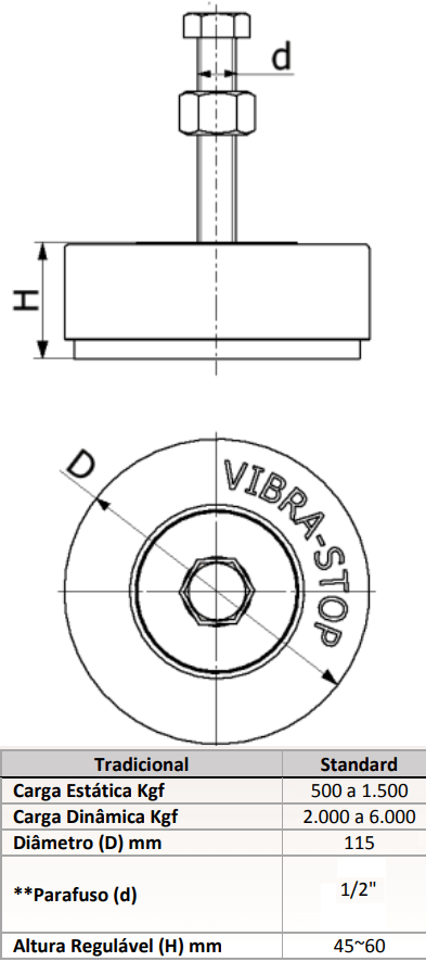 Equipamentos IndustriaisAmortecedores (Vibra-Stop)Amortecedor p/maquina rosca 1/2 - capacidade 6000 kg vibra-stop