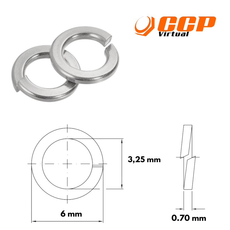 FixaçãoArruelas Lisa e Pressão em Inox 304Arruela de Pressão Zincada 1/8" - 100 Peças