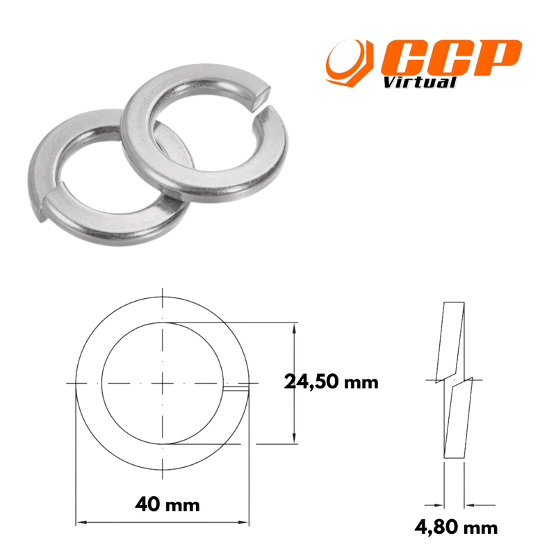 FixaçãoArruelas Lisa e Pressão em Inox 304Arruela de Pressão Inox A2 M24