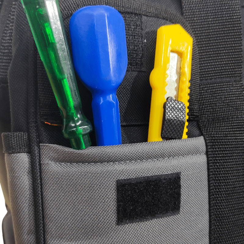 Com um total de 20 bolsos, sendo 10 externos e 10 internos, esta bolsa proporciona uma variedade de opções de armazenamento para ferramentas e acessórios. A disposição dos 10 bolsos externos é estratégica: são 4 bolsos nas laterais que permitem um acesso rápido aos itens mais utilizados. Enquanto 3 bolsos frontais e 3 traseiros, ambos com fechamento em velcro, garantem uma armazenagem segura e organizada das ferramentas. Além disso, a bolsa também possui 10 bolsos internos, oferecendo um espaço adicional para acomodar ferramentas de diversos tamanhos e formatos, mantendo-as protegidas e acessíveis.