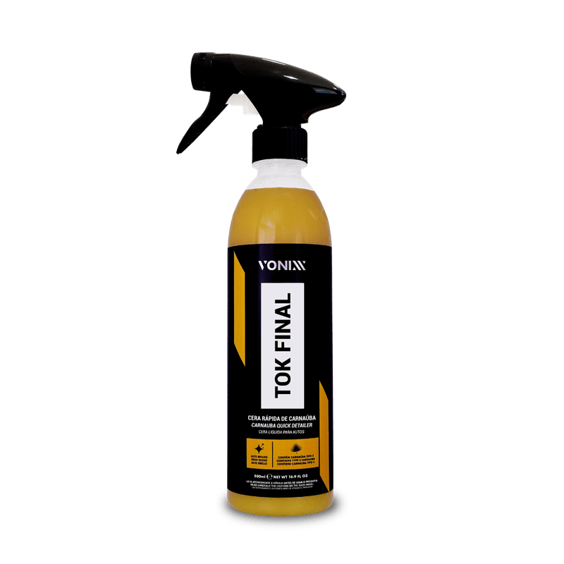 Tok Final foi desenvolvida com a mais pura cera de carnaúba cearense e polímeros de última geração, que potegem e realçam o brilho de pintura automotivas. É ideal para ser usada após a lavagem e na manutenção da proteçao da pintura do veículo entre os enceramentos. Pode ser aplicada em toda a parte do veículo, incluindo vidros, para-choques e borrachas.