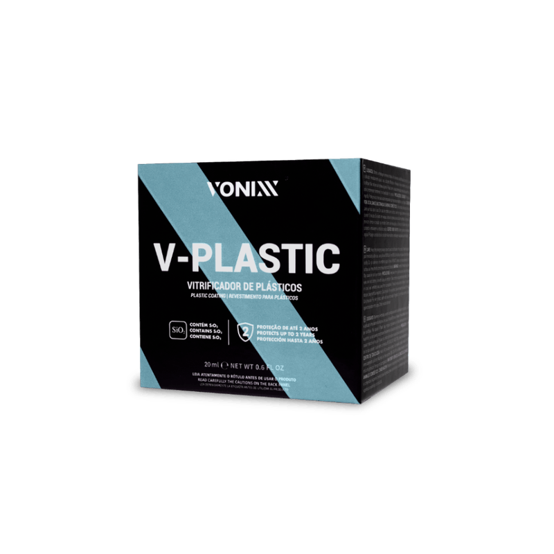 V-Plastic é um coating semipermanente, desenvolvido exclusivamente para tratamento de superfícies plástica, a fim de renovar e restaura plástico por um período de até dois anos. Promove resistência e proteção UV. Também pode ser utilizado em plásticos novos, para evitar a degradação do material e prolongar em até três vezes sua vida útil. V-Plastic pode ser aplicado em para-choque, painés e laterais de portas
