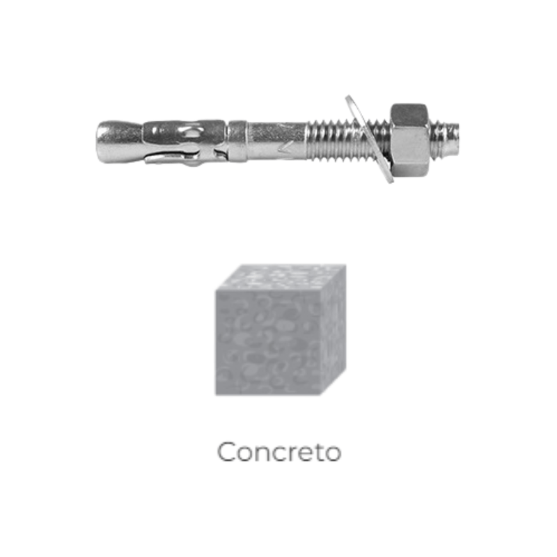 Chumbador de expansão controlada por torque. Composto de parafuso expansor, presilha, porca e arruela lisa.