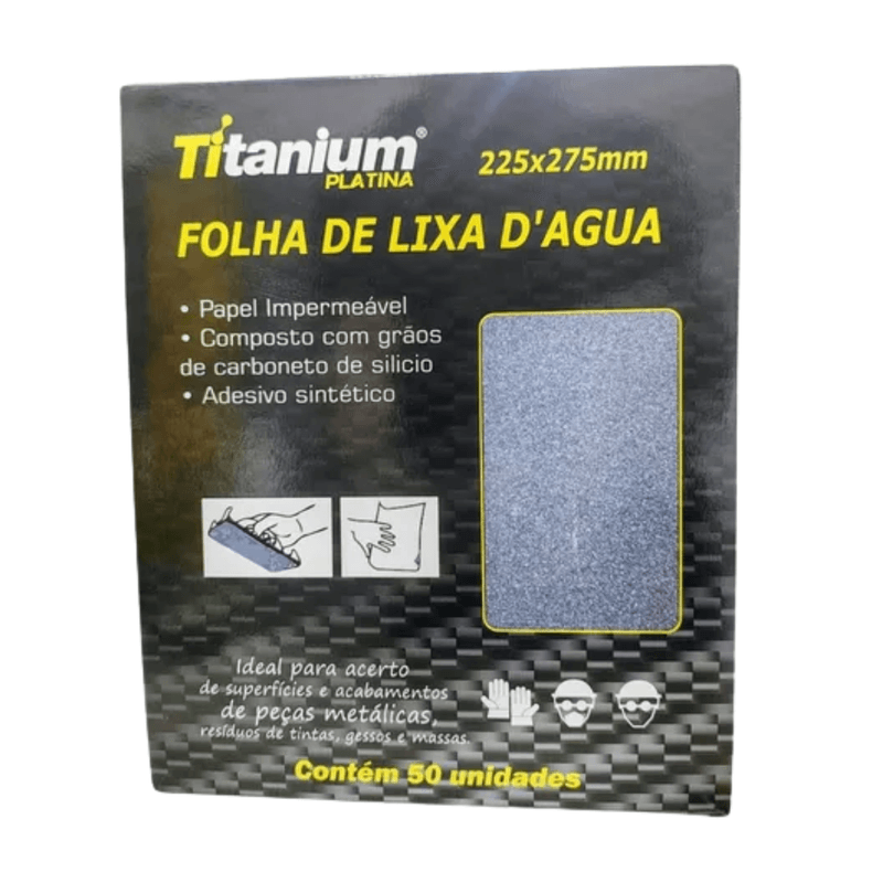 A Folha de Lixa d'Água Titanium é indicada para lixamento manual úmido ou seco em superfícies metálicas, plásticas, madeira e massa automotiva. Proporciona alto poder de remoção, sendo ideal para nivelamento e desbaste inicial.