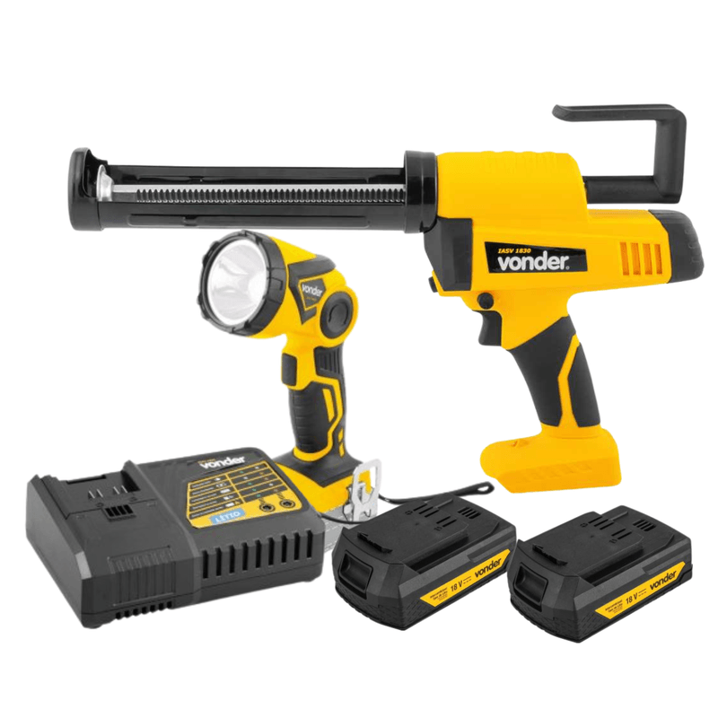 Este kit foi desenvolvido para oferecer praticidade, autonomia e desempenho profissional em trabalhos com silicones e selantes. Todos os itens são compatíveis entre si e fazem parte da linha intercambiável 18V da Vonder.