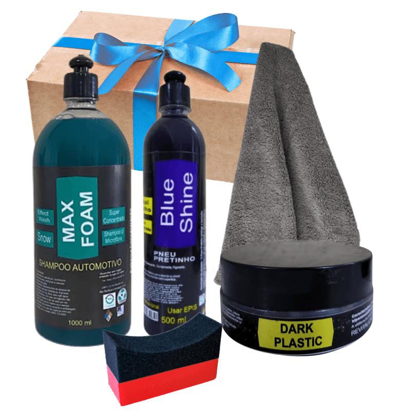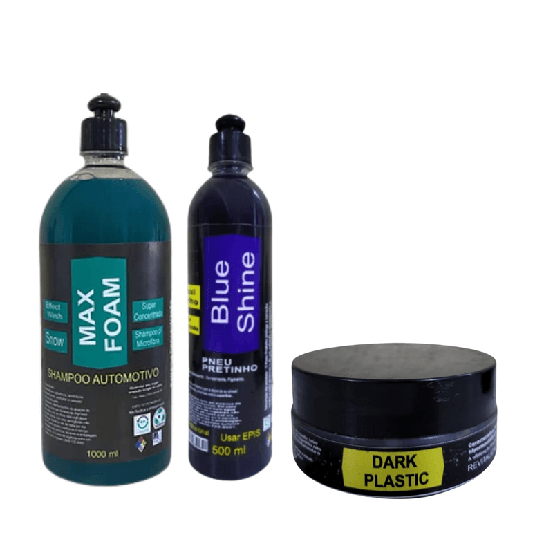 Kit Cuidado Automotivo Max Foam + Blue Shine + Pasta Dark + 2 Acessórios - Monoquímica