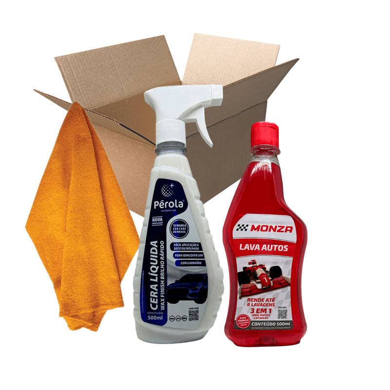 Este kit foi pensado para quem busca praticidade na limpeza e proteção da pintura automotiva. Combinando a eficiência do shampoo Monza com o acabamento da cera líquida Pérola, este combo é ideal para deixar seu veículo limpo, protegido e com brilho intenso.