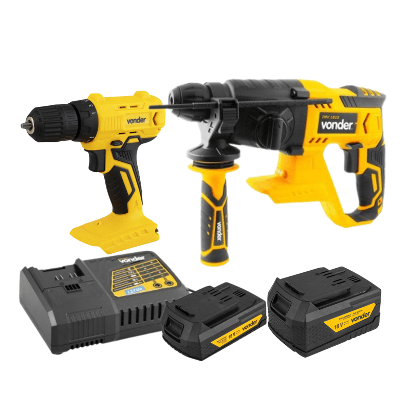 O kit ideal para quem busca potência, autonomia e versatilidade em trabalhos de perfuração, fixação e rompimento. Composto por ferramentas e acessórios da linha intercambiável 18V Vonder, garante praticidade e desempenho profissional.