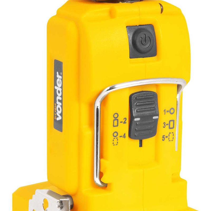 Este equipamento utiliza um modelo de bateria que pode ser intercambiável (não acompanha), ou seja, uma bateria que é compatível com outros modelos de ferramentas a bateria VONDER. Por isso, em sua próxima compra de ferramenta a bateria VONDER, procure um modelo que comece com a referência I, ou que esteja identificado com o selo Bateria Intercambiável VONDER. Desta forma, você garante modelos mais econômicos, sem a necessidade de aquisição de novas baterias e carregadores para uso em seu equipamento. Possui 5 estágios de luz: 1ª lanterna, 2ª lanterna + luz de leitura, 3ª luz de leitura, 4ª luz de leitura + luz de flash e 5ª lanterna + luz de flash e a cabeça da lanterna pode ser girada em qualquer direção.