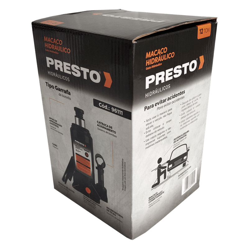 Macaco Hidráulico Tipo Garrafa 12 Toneladas 96111 - Presto
