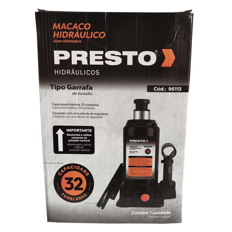 Macaco Hidráulico Tipo Garrafa 32 Toneladas 96113 - Presto