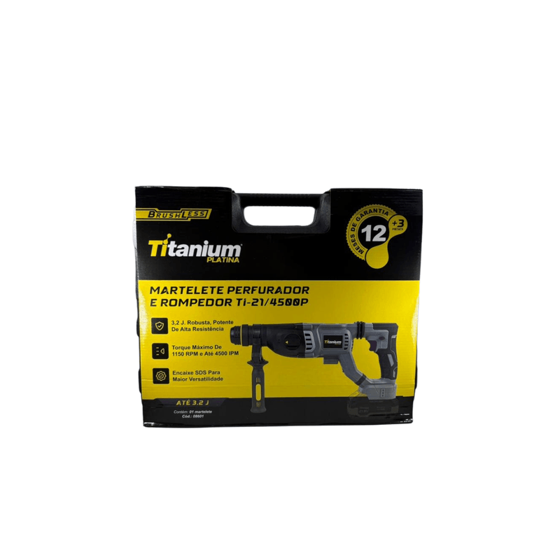 Leve a potência de um martelete profissional para qualquer canteiro de obras com o Martelete a Bateria TI-21/4500P da Titanium. Projetado para oferecer o máximo de desempenho na perfuração de concreto, alvenaria e metal, além de função rompedora (cinzelamento) para pequenos ajustes e demolições.
