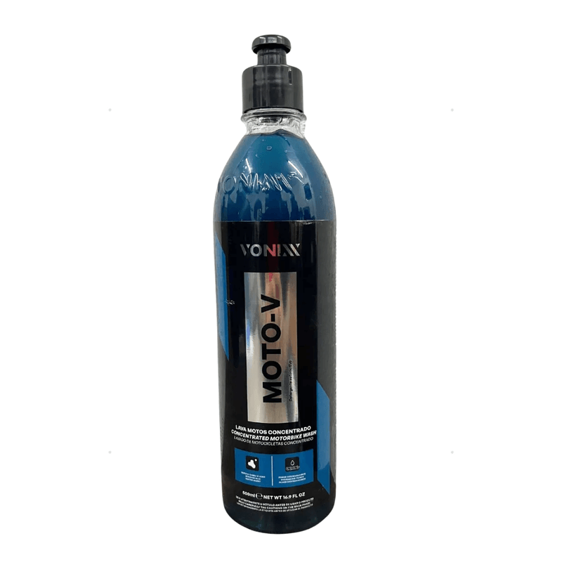 Moto-V é um lava-motos, desenvolvido para limpeza de alta eficiência. Sua formulação equilibrada permite uso, sem agredir, em todas as partes da motocicleta, seja motor, pintura, metais ou plásticos. As possíveis diluições do produto proporcionam ao mesmo a remoção dos mais diversos tipos de sujeira, como barro, lama, graxa e óleo.
