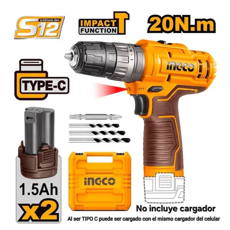 Parafusadeira e Furadeira de Impacto 3/8'' 12V CIDLI12202 - Ingco