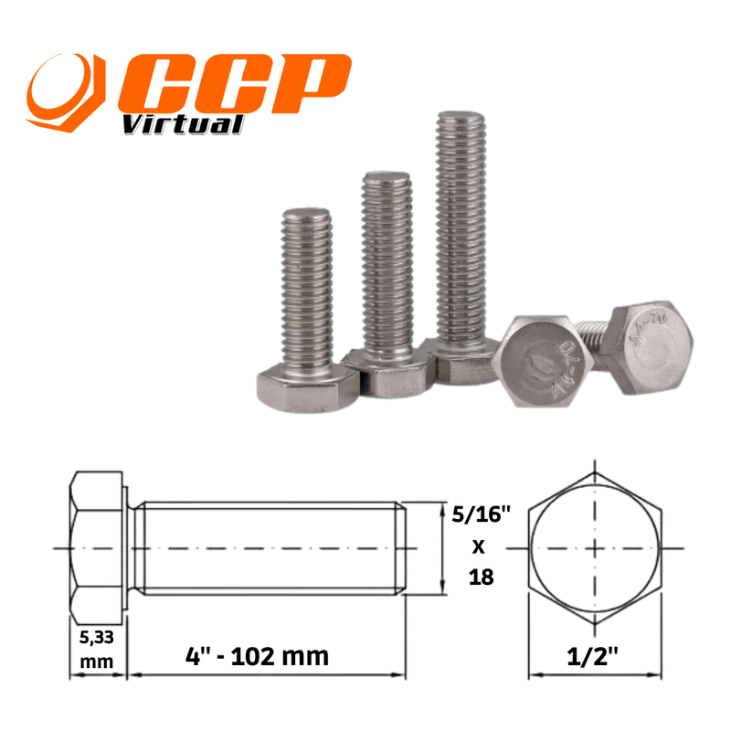 FixaçãoParafusos Sextavado em Inox 304Parafuso sextavado r.I inox 304 - 5/16-18 x 4