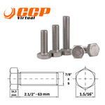 FixaçãoParafusos Sextavado em Inox 304Parafuso sextavado r.I inox 304 - 7/8-9 x 2.1/2