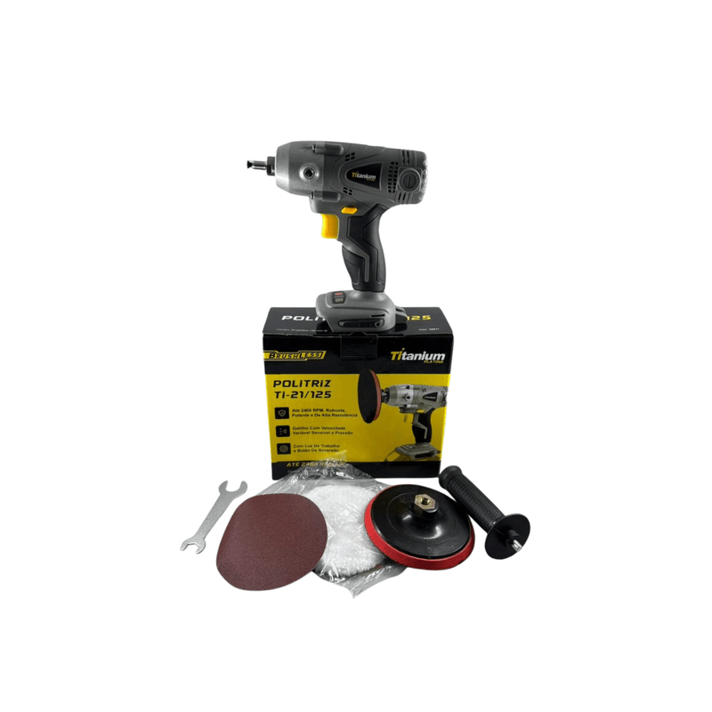 Itens Inclusos: 1 Politriz Titanium TI-21/125, 1 Boina/Disco, 1 Empunhadeira Lateral, 1 Manual de Instruções.