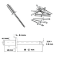 | Diâmetro do Rebite | 4.8 mm - 3/16 pol. |
