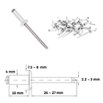 | Diâmetro do Rebite | 4 mm - 5/32 pol. |