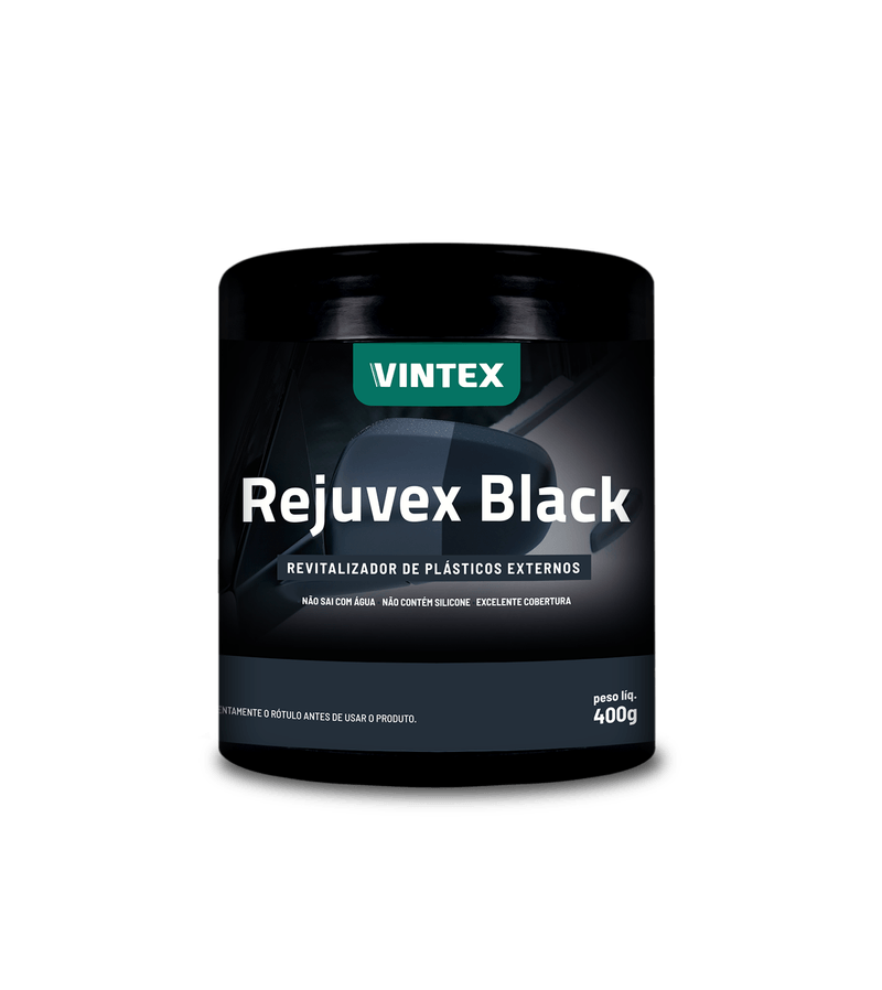 Rejuvex Black é um revitalizador de plásticos que renova e dá brilho em plásticos externos de automóveis. Desenvolvido com matérias-primas especiais, o produto é indicado para uso em oficinas de repintura automotiva, principalmente para os plásticos originalmente mais escuros. Sua aplicação fácil e rápida proporciona acabamento profissional e efeito duradouro.