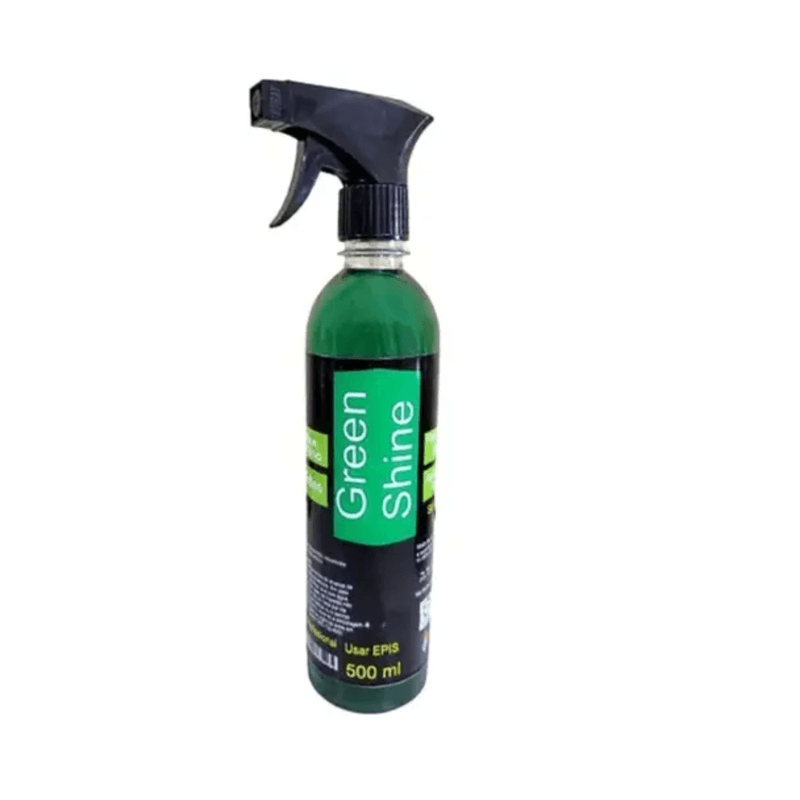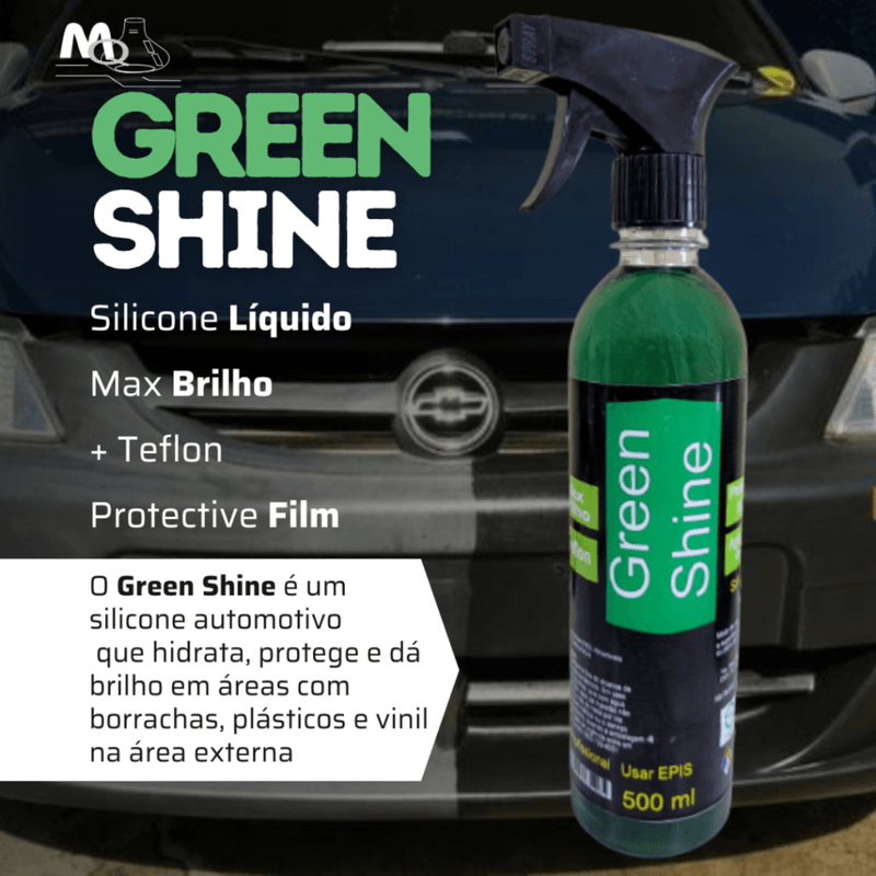 O Green Shine é um silicone automotivo com Teflon, desenvolvido para hidratar, proteger e dar brilho intenso a superfícies externas de borracha, plástico e vinil. Sua fórmula avançada forma uma película protetora que repele água e sujeira, prolongando o aspecto de novo e evitando o ressecamento causado pelo sol e pelas intempéries.